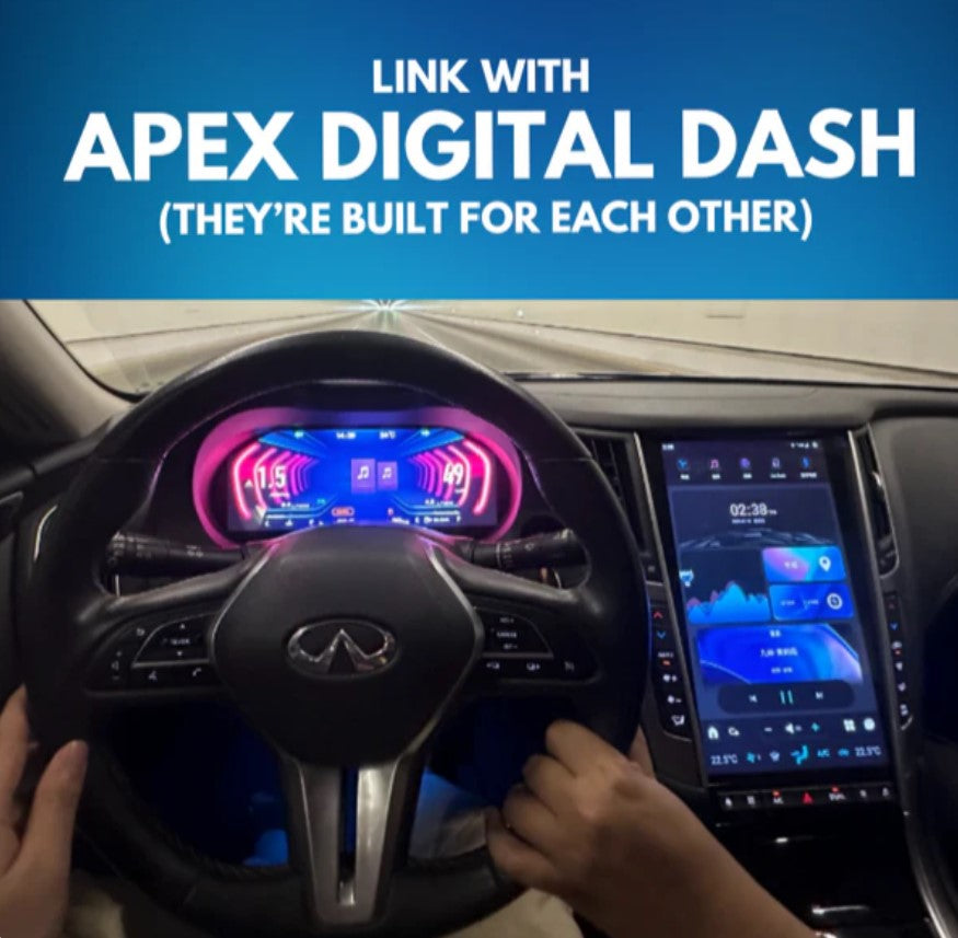 Upgrade your Infiniti Q50 with the Apex Digital Cluster, a fully customizable high-definition display featuring HDMI input and support for Apple CarPlay and Android Auto. Seamlessly integrate advanced performance tracking, sleek visuals, and modern functionality to enhance every drive.