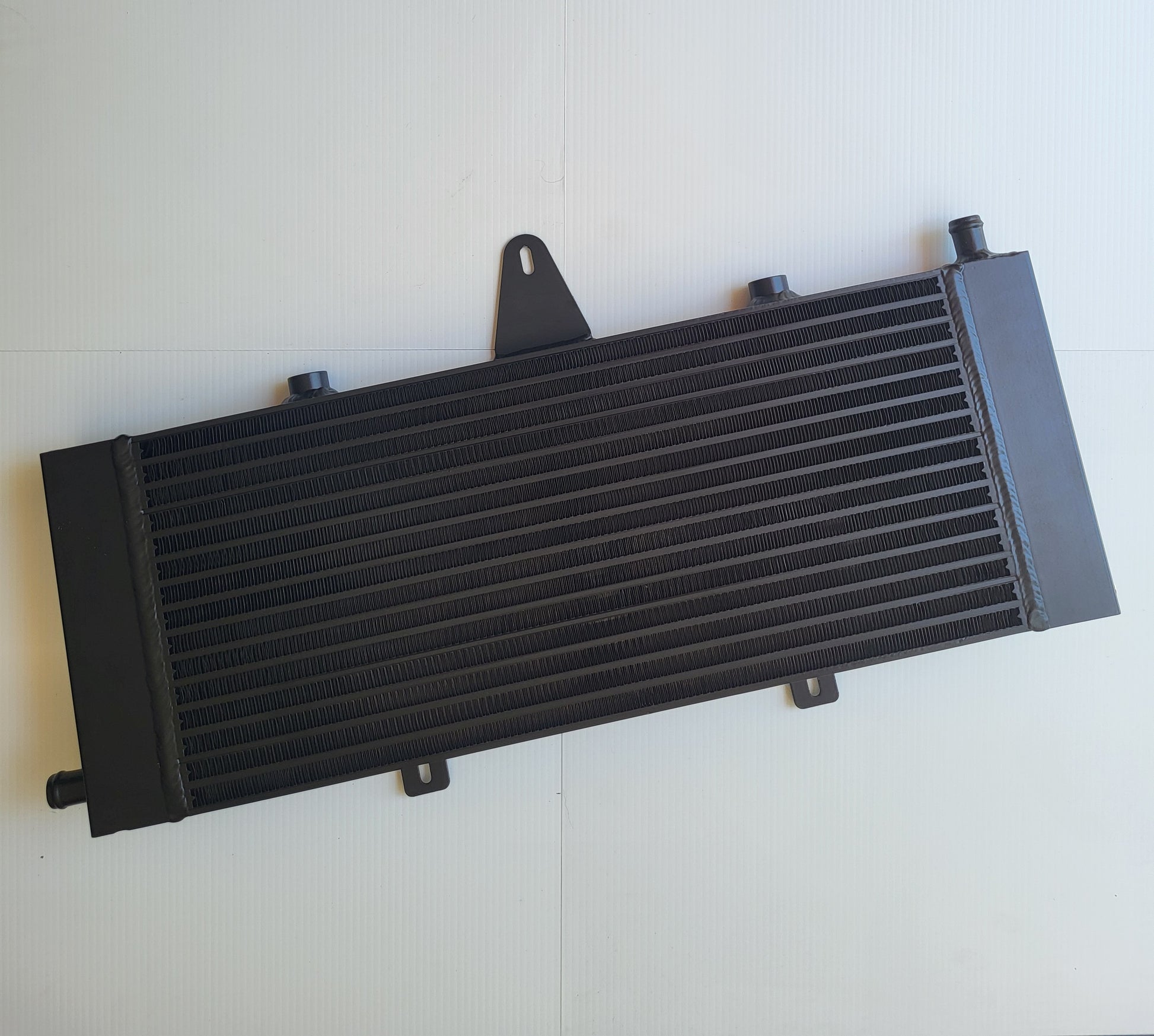 - Heat Exchanger: 5X the Fluid Capacity: With over 5x the fluid volume of the stock unit, this heat exchanger maintains consistent cooling performance, even during repeated high-boost runs.